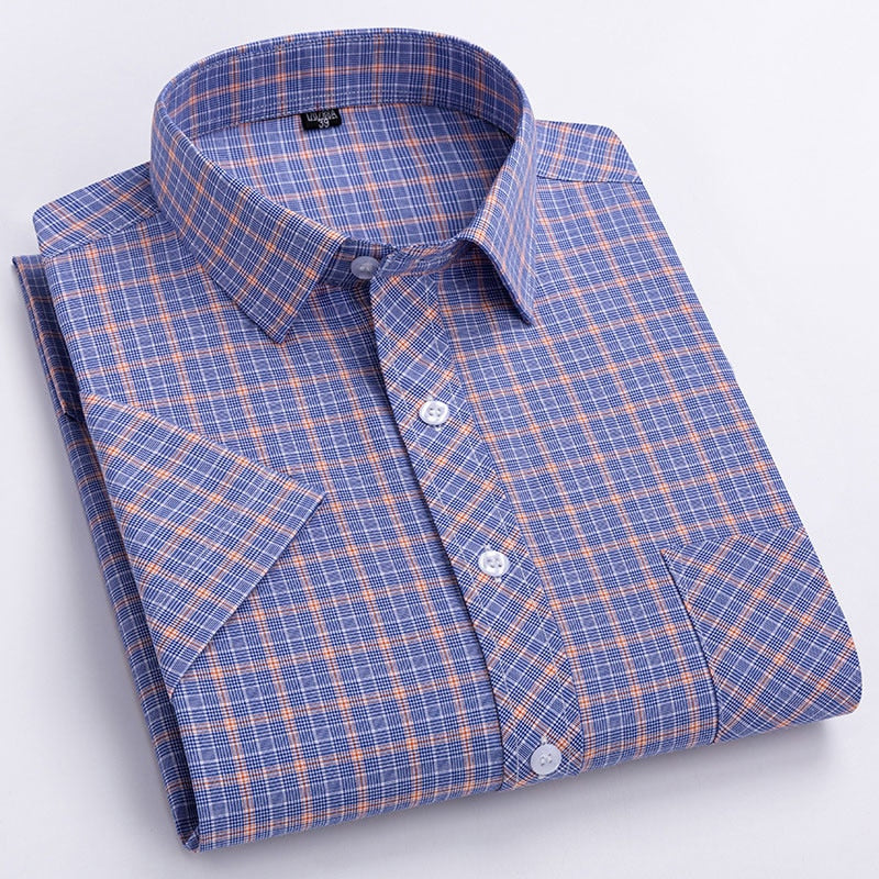 Men's Plaid Shirts Short Sleeve Thin Summer Luxury Standard Fit Checked Casual Shirt For Men 100% Cotton