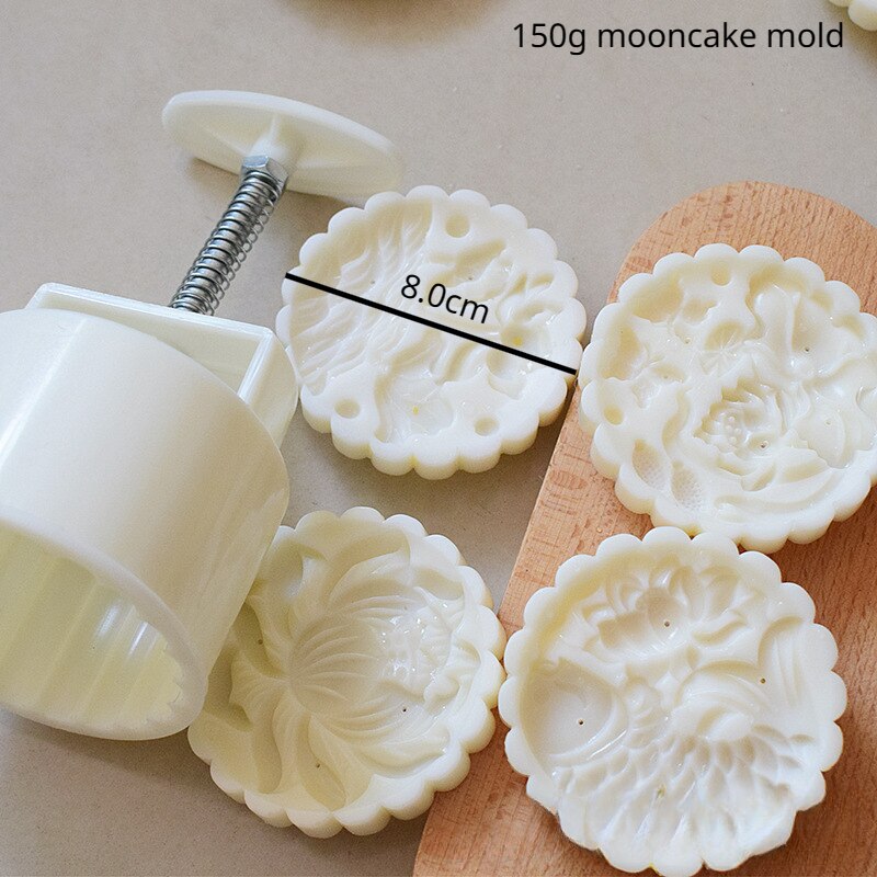 Mid-autumn Moon Cake Press Mold, Hand-pressed Cookie Dessert DIY with Stamp Flower,DIY Hand Press Cookie Cutter Mooncake Maker