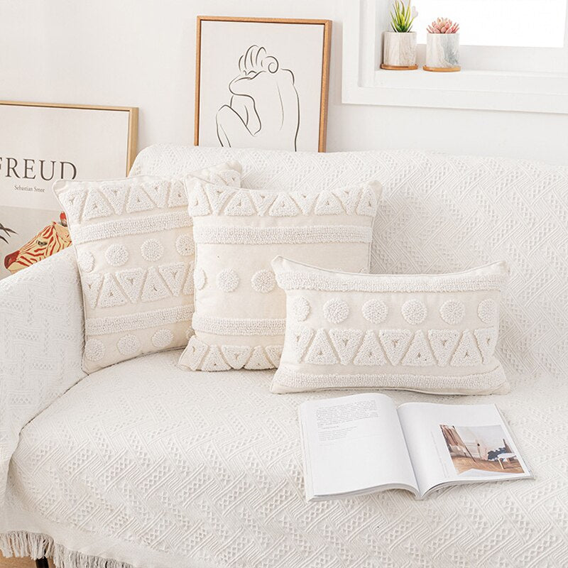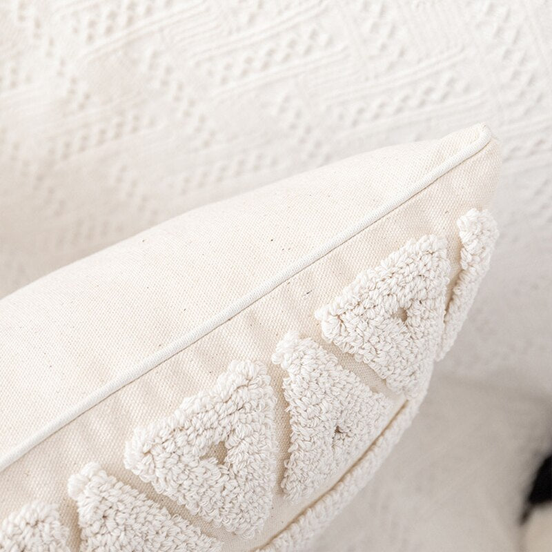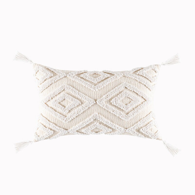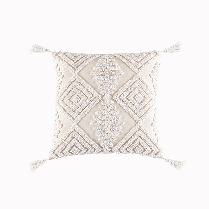 Morocco Tufted Throw Pillow Case with Tassels Boho Farmhouse Cushion Covers for Sofa Couch Home Décor 45x45cm Cream Beige TJ7143