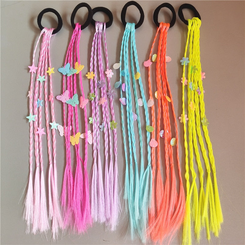 New Girls Colorful Wigs Ponytail Headbands Rubber Bands Beauty Hair Bands Headwear Kids Hair Accessories Head Band Hair Ornament