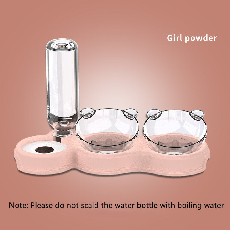 Pet Cat Bowl Automatic Feeder 3-in-1 Dog Cat Food Bowl With Water Fountain Double Bowl Drinking Raised Stand Dish Bowls For Cats