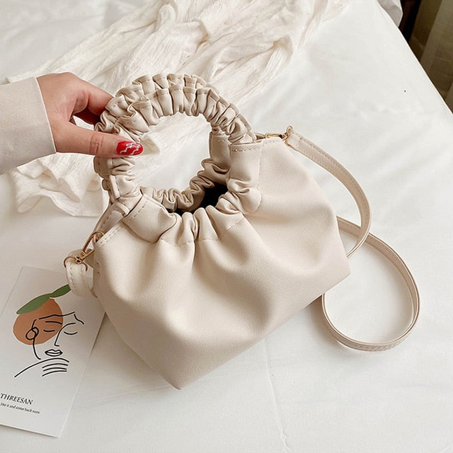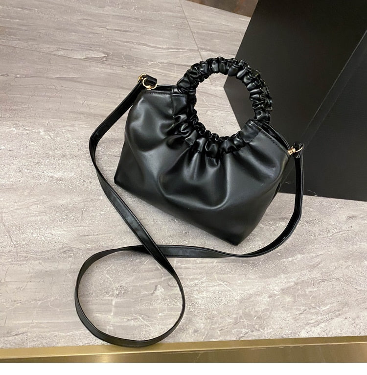 Retro Tote Bags Women Leather Clutches Women Vintage Ruched Shoulder Messenger Bags For Women Handbag And Purses Female Hobo