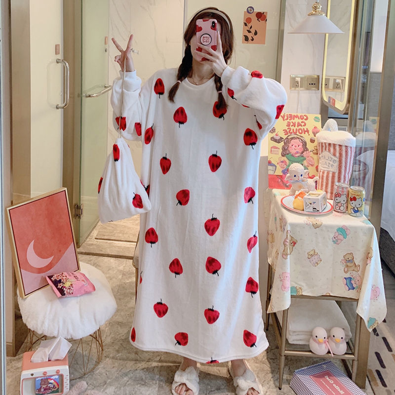 Robe Femme Night Wear Women Velvet Cute Cartoon Print Long Comfort Nightgown Loose Plus Size Winter Clothes Sleepwear Women