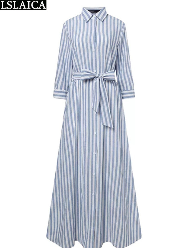 Shirt Women's Dress Boho Elegant Party Dresses 2023 Long Evening Gown Lace Up Simple Summer Striped Gowns Ladies Chic New Trendy