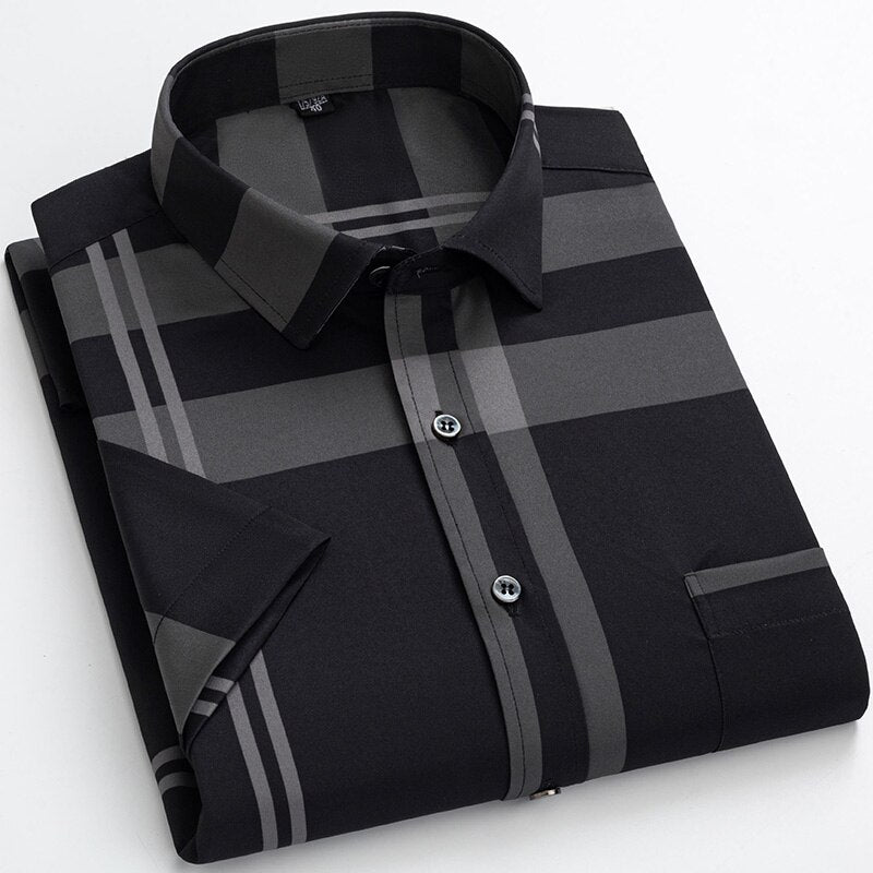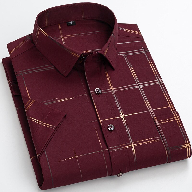 Short Sleeve Shirts for Men Summer Casual Printed Anti-wrinkle Social Formal Soft Comfort Button Business Gold Stamping Plus 6XL