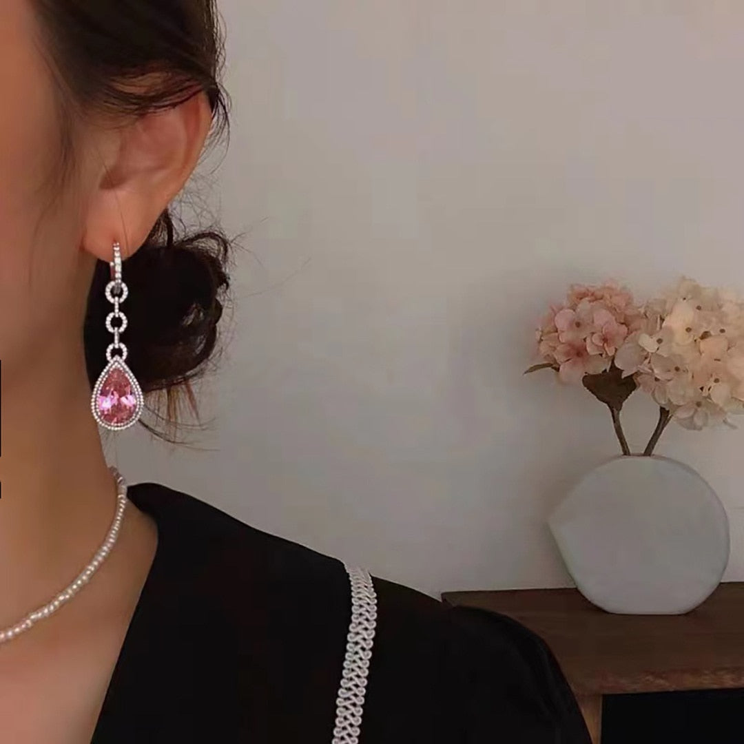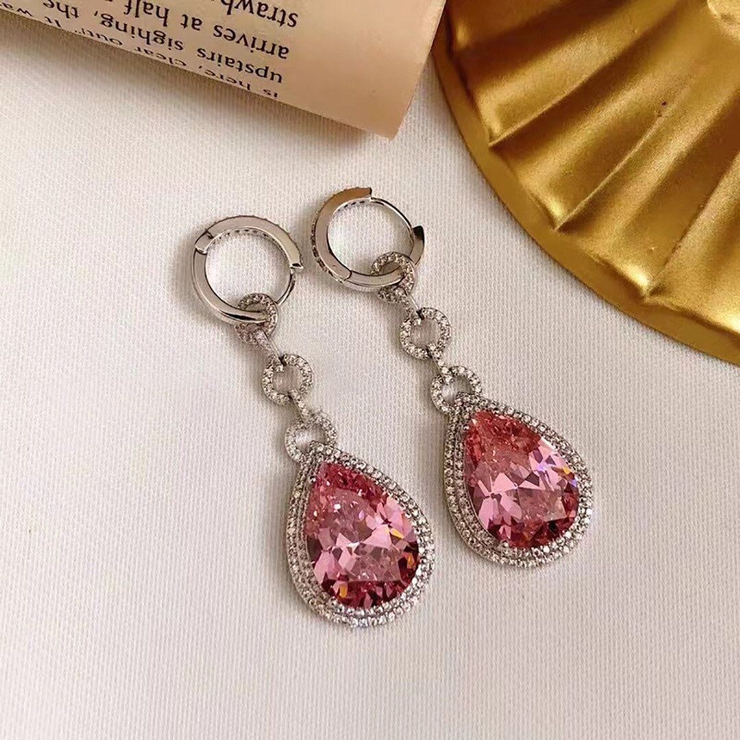 Sparkling Water Drop Earrings 2022 Trend Pink AAA Zircon Stone Women Wedding Engagement Bridal Crystal Dangle Fashion Jewelry
