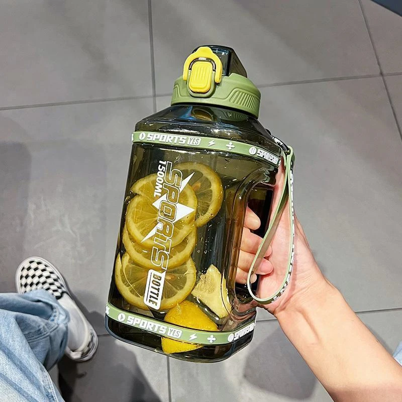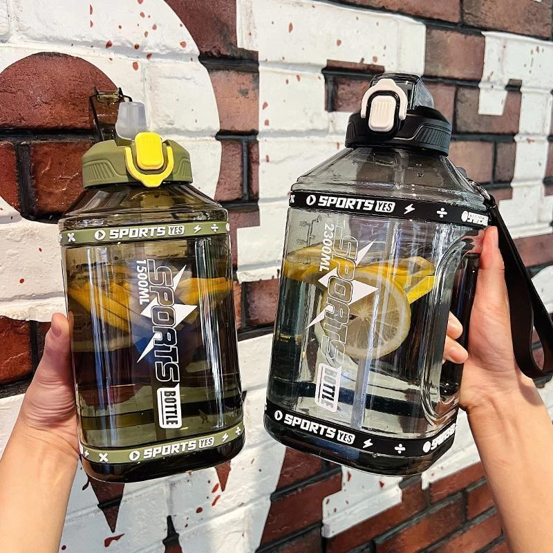 Sports Water Bottle 1.5/2.3L Large Capacity Water Cup Outdoor Fitness Portable Straw Water Bottle Men Women Summer Water Bottle