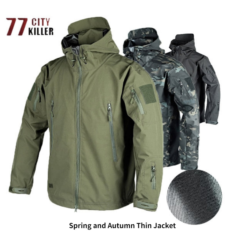 Spring and Autumn Thin Shark Skin Jacket Men's Hooded Multi Pocket Zipper Tactical Coat Men Outdoor Special Forces Combat Jacket