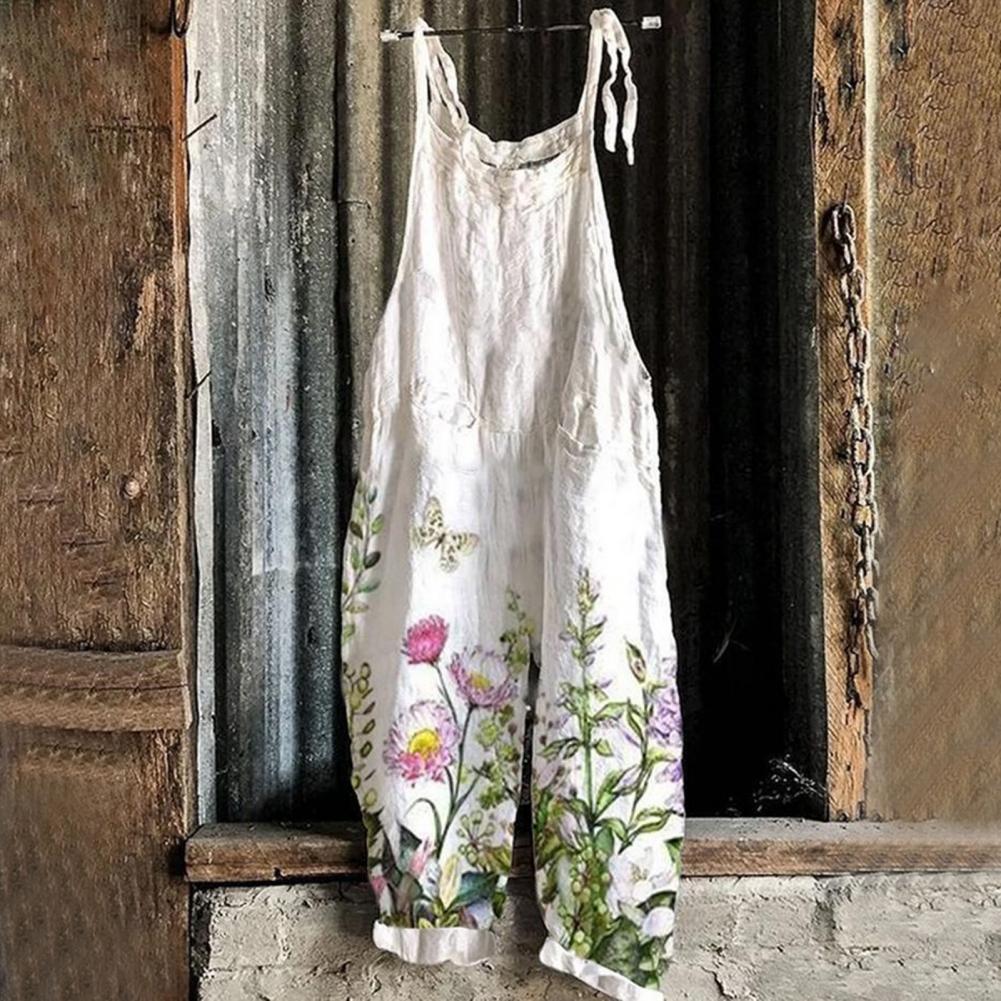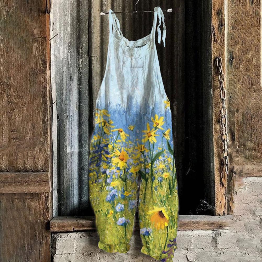 Summer Romper Streetwear Printed Jumpsuit Thin Breathable Creative Vintage Floral Print Elegant Women Jumpsuits