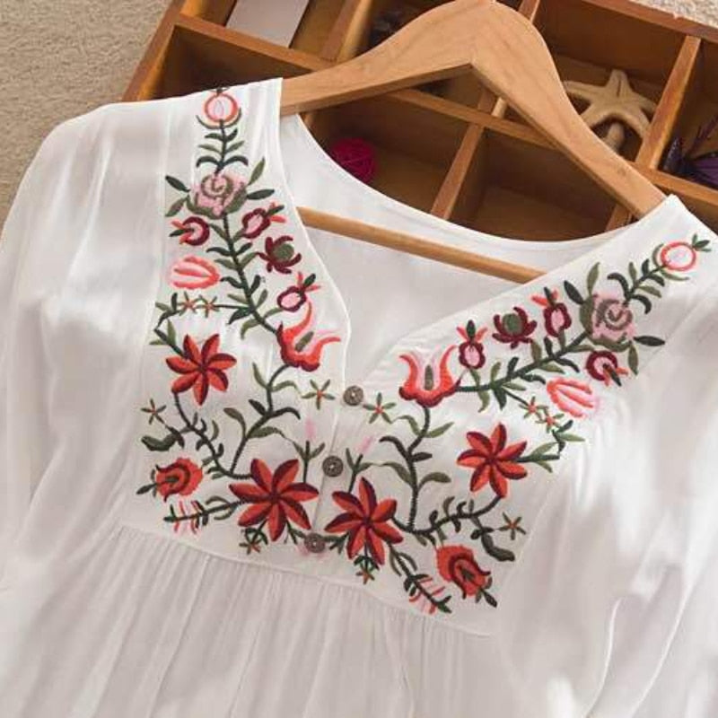 Summer Women Mexican Embroidered Floral Peasant Blouse Vintage Ethnic Tunic Boho Hippie Clothes Tops Blusa Feminina