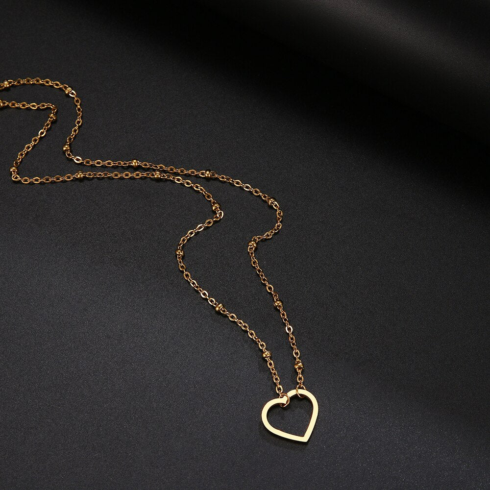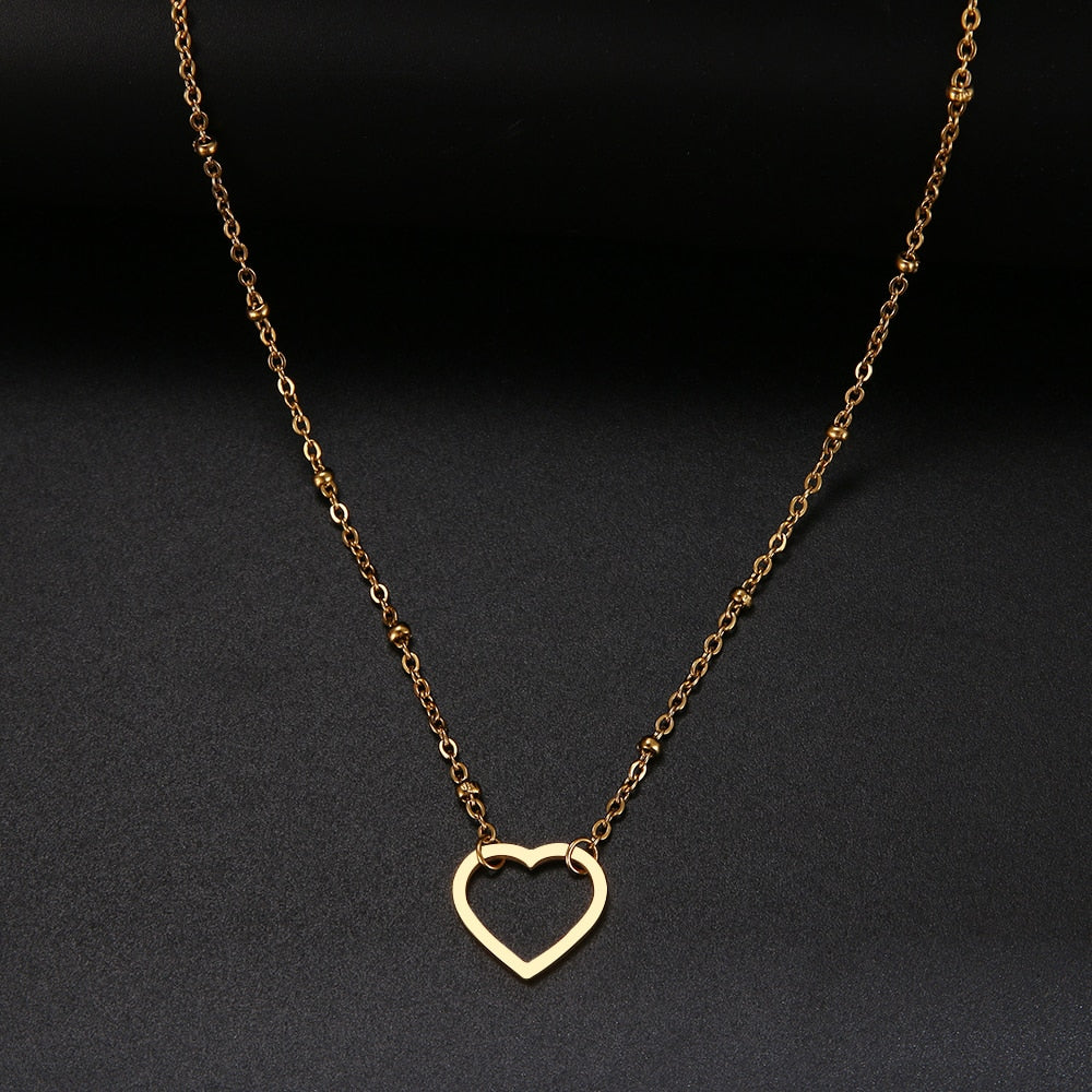 Sweet Cutout Love Heart Choker Necklace Statement Girlfriend Gift Cute Gold Color Stainless Steel Necklace Jewelry