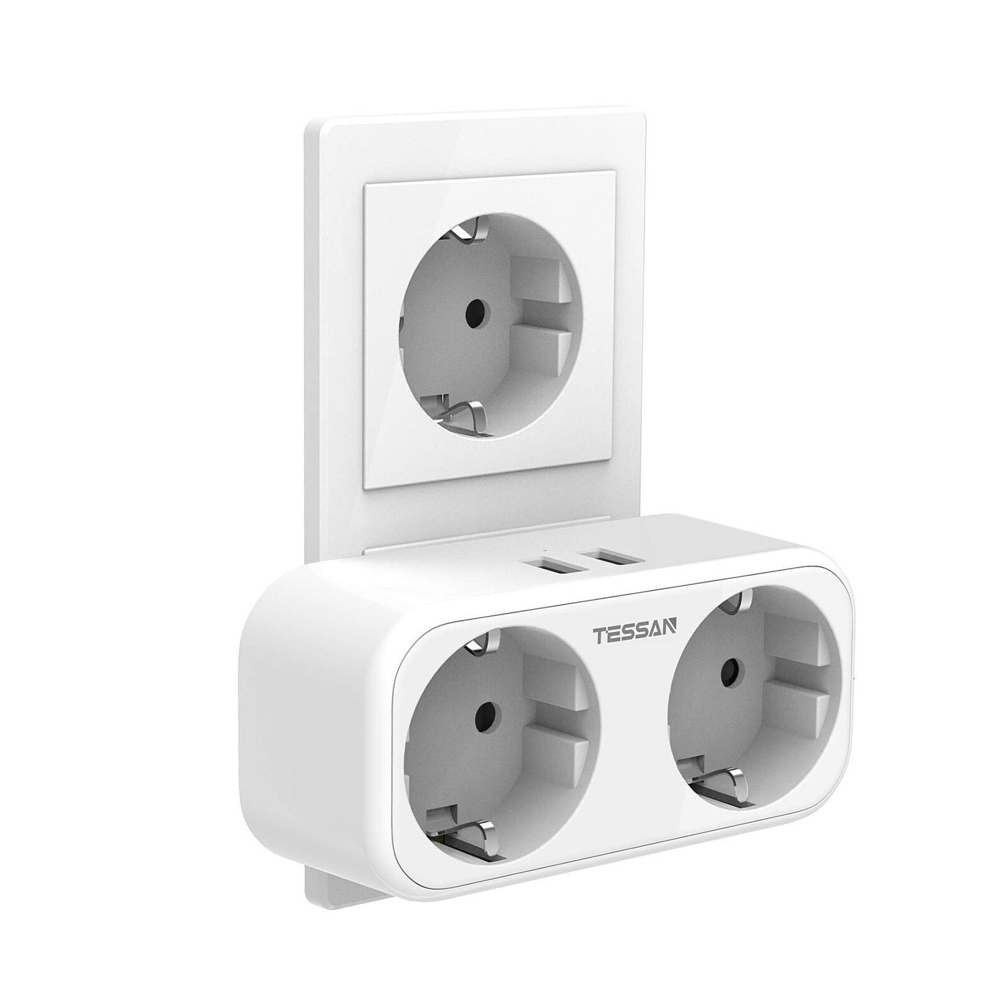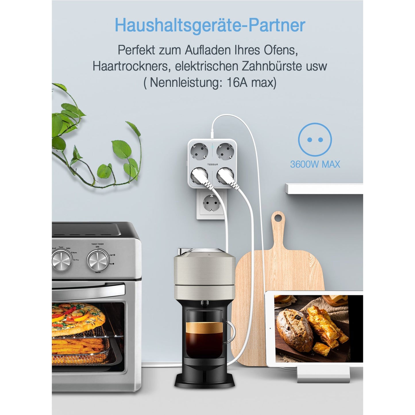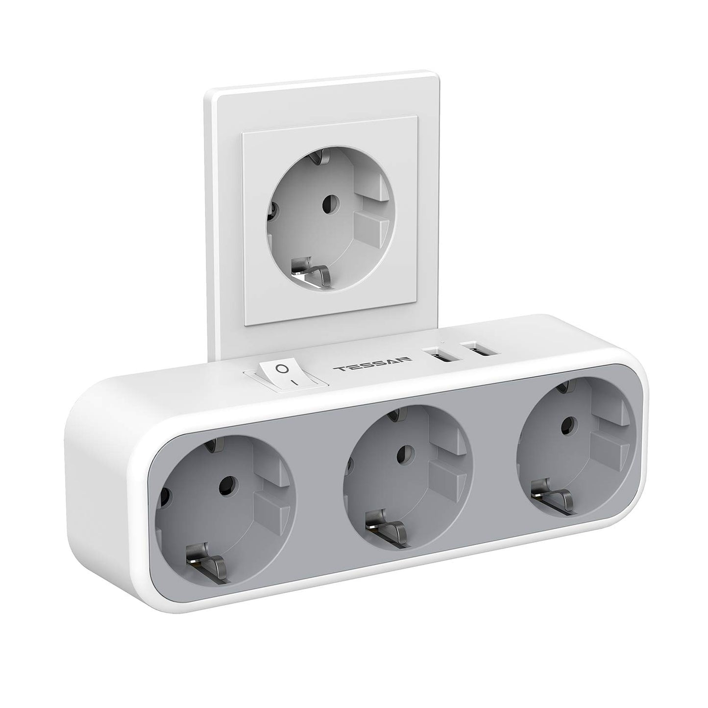 TESSAN Multi Outlets Power Stirp with Outlet and USB Ports, EU Wall Socket Power Adapter with Overload Protection for Home