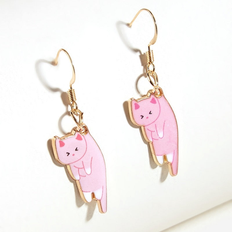 Trendy Cute Kitten Ear Hook Cartoon Girl Flower Cat Earrings Sweet and Fresh Texture Earrings pendientes pendientes colgantes