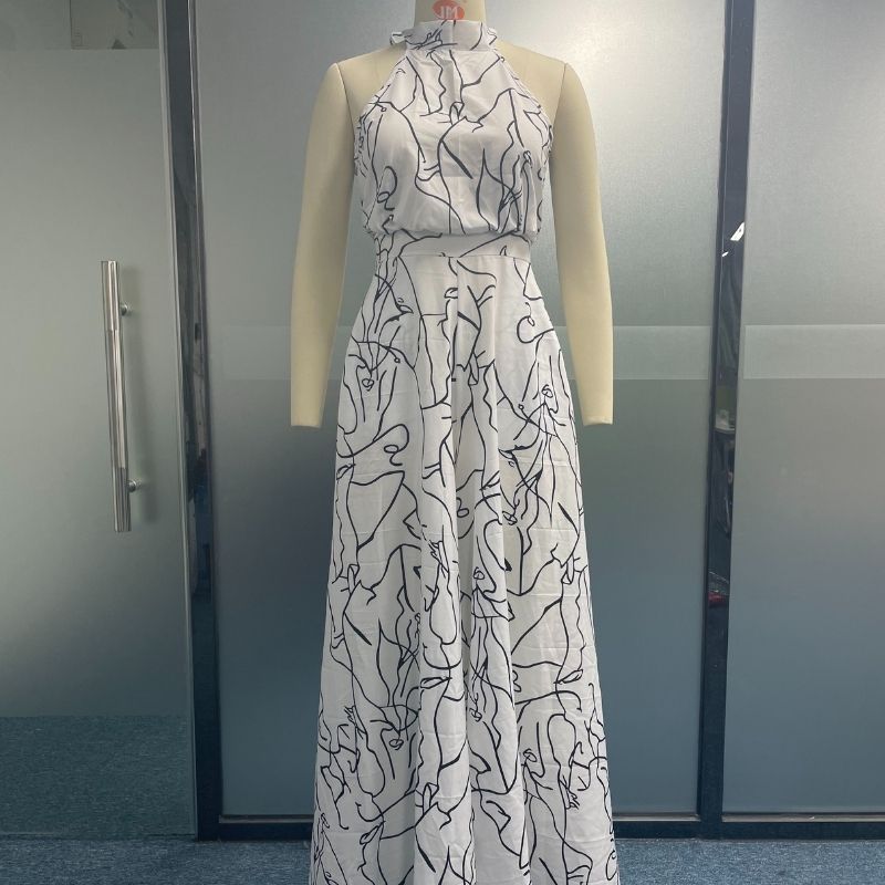 Wefads Women Jumpsuit Summer Sexy Halterneck Sleeveless Art Print Jumpsuit High Streetwear Bodycon Wide Leg Romper