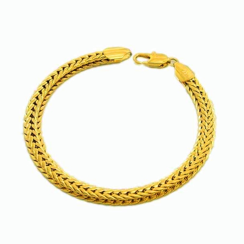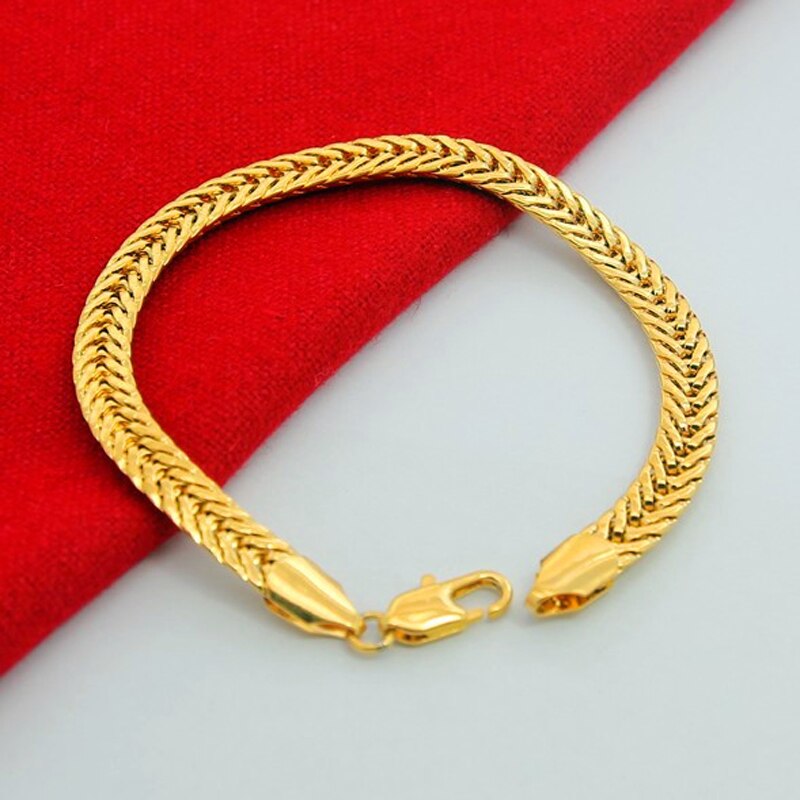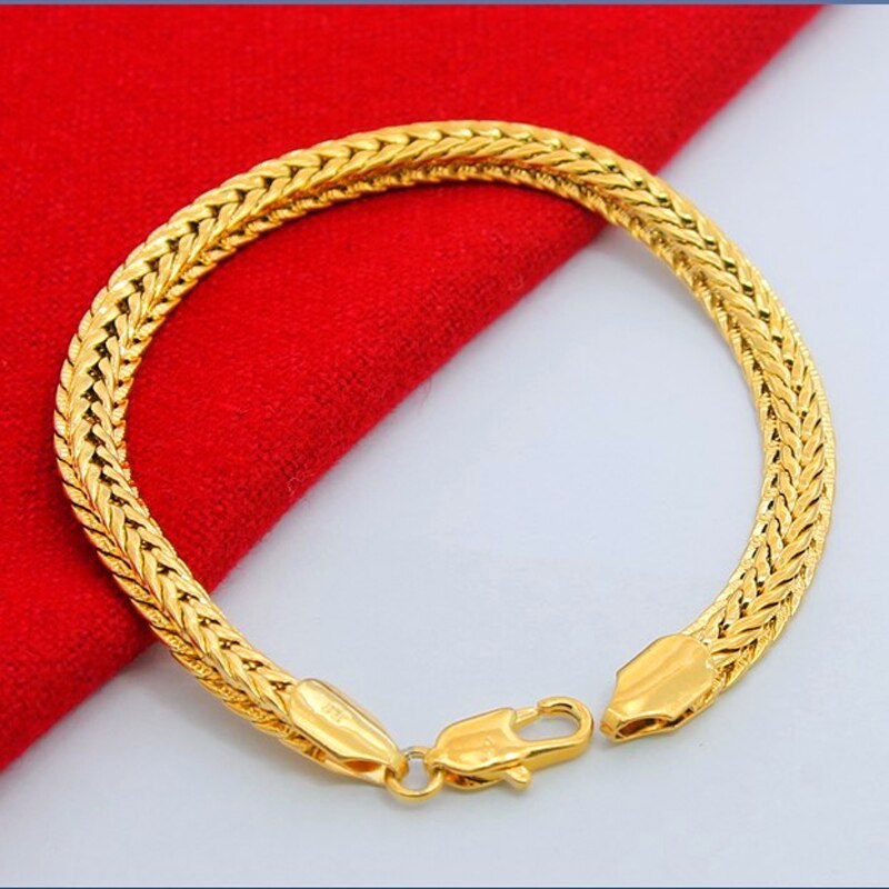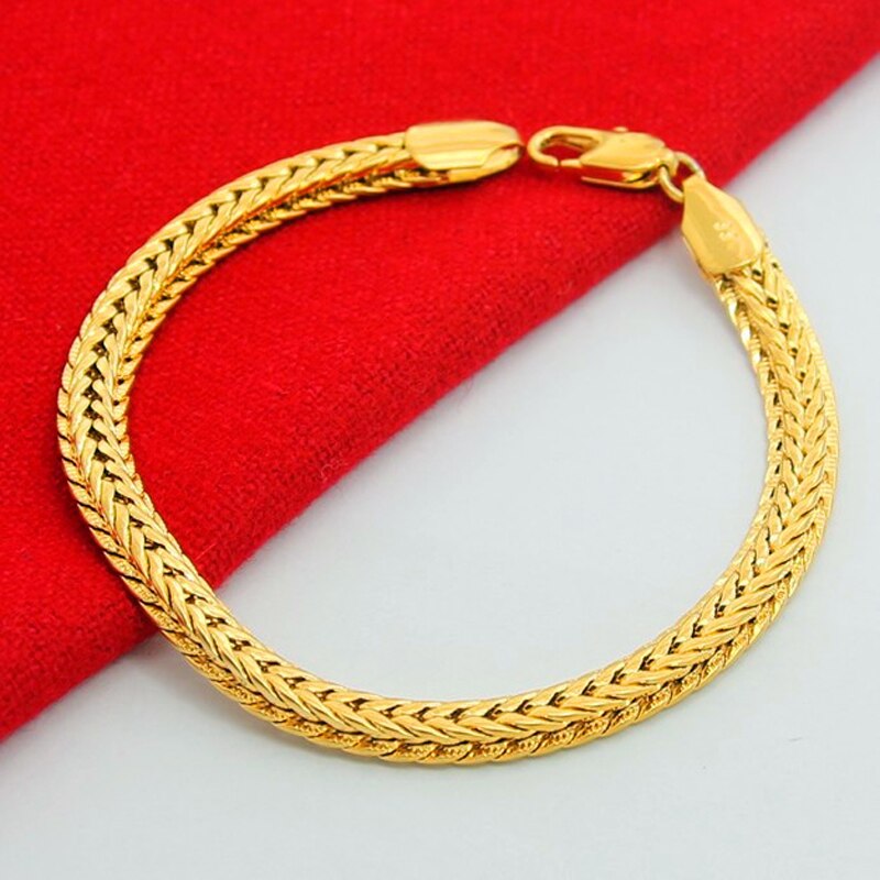 Wholesale Pure Gold Color 6.5MM Width Bracelet For Men 20CM.Fashion Original 24k GP Women men's Jewelry Gift