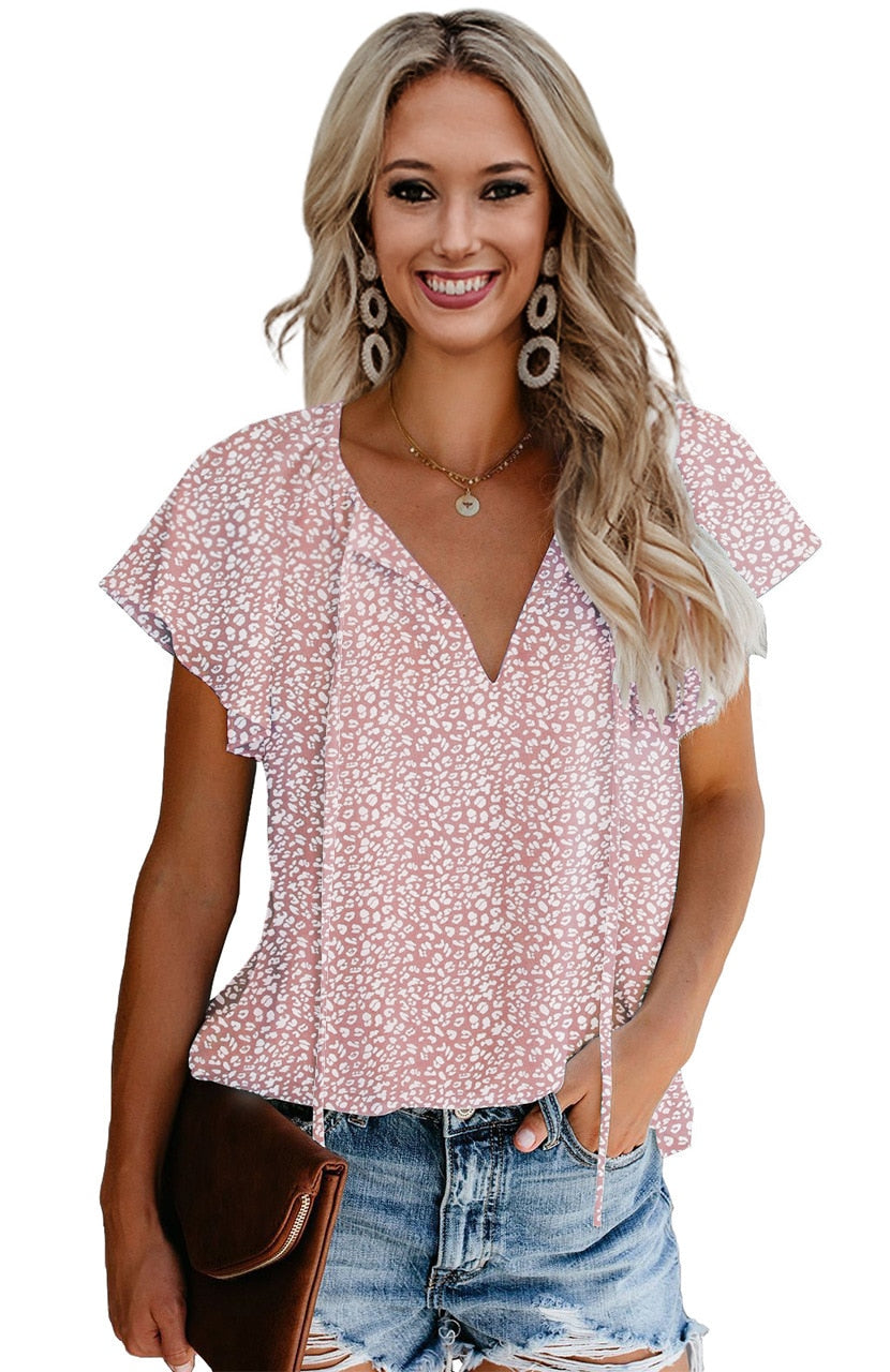 Women Blouses Butterfly Short Sleeves Shirt Summer Bow Lace Up Polka Dot Female Tops Ruffle Pullover Vintage Blusa