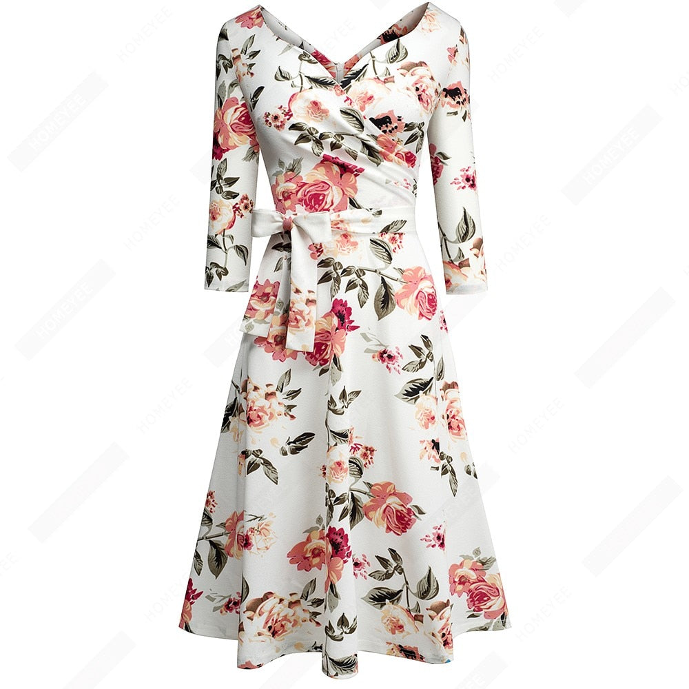 Women Classic Vintage Sexy V Neck Bow Party Casual Elegant Charming A Line Dress EA240