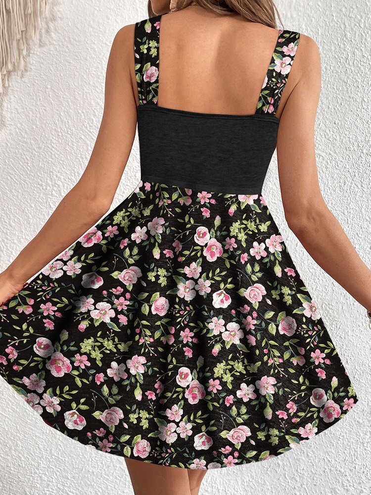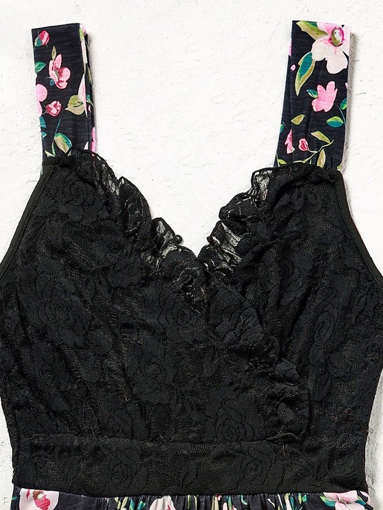 Women Floral Patchwork A-line Ruffled Lace Splicing Open Back Mini Dress 2023 Summer V-Neck Office Lady Casual Dresses Vestido