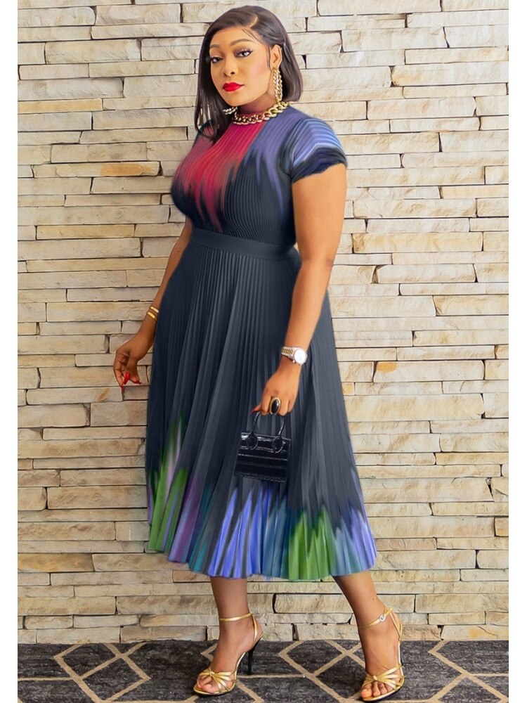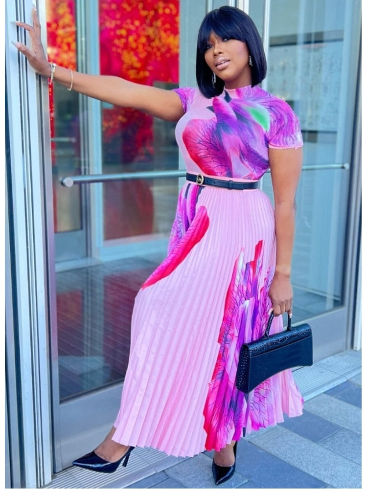 Women Spirng Summer Dress Ladies 2023 Casual Slim Office Dress Retro Elegant O-Neck High Waist Short Sleeve Party Pleated Dress