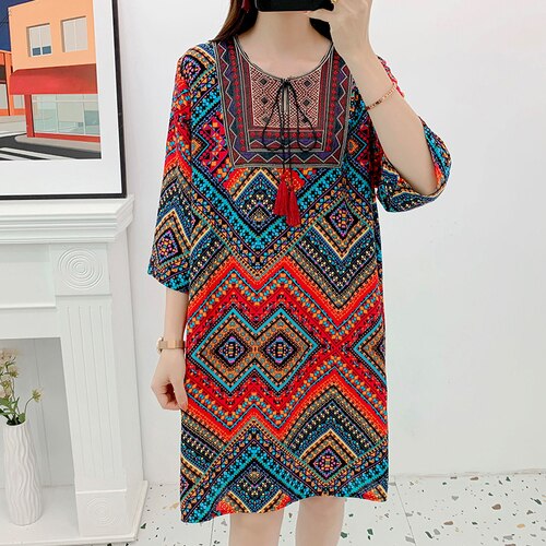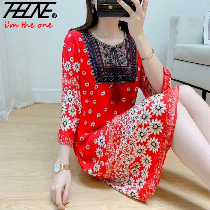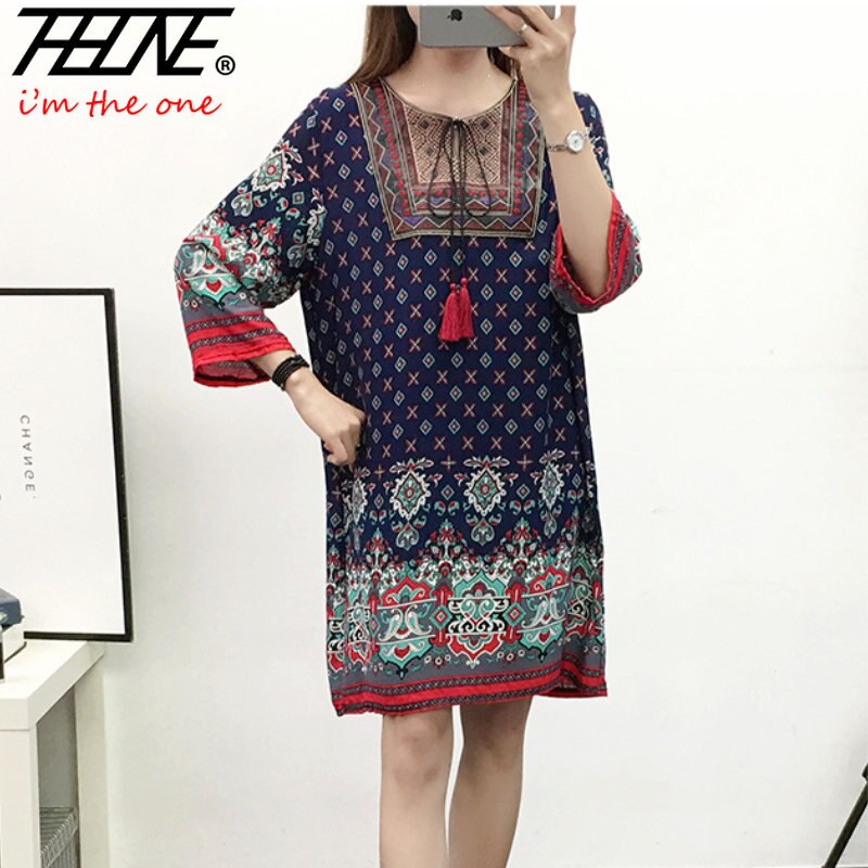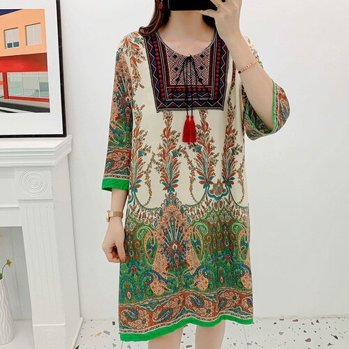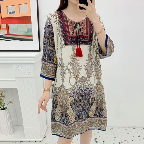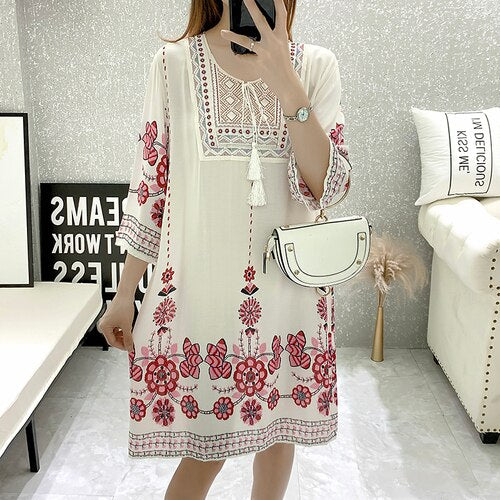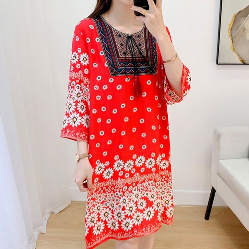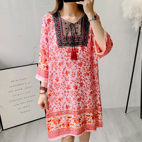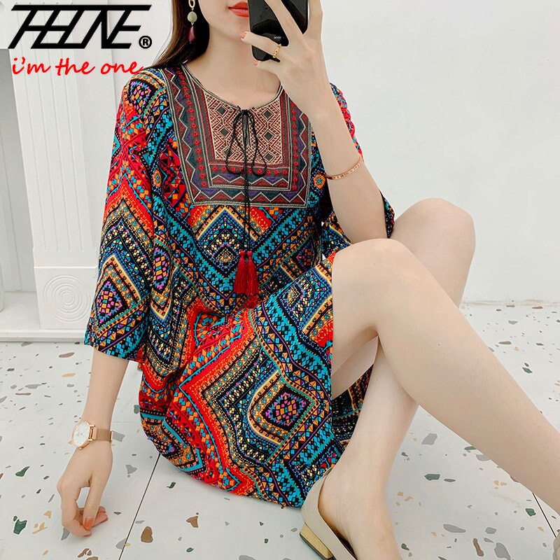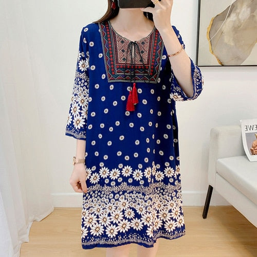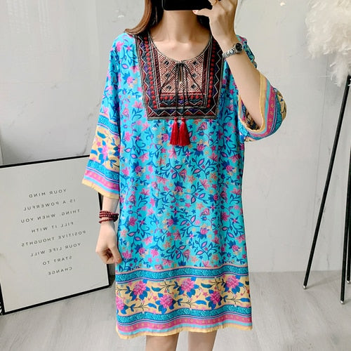 Women's Clothing Women Indian Dress Ready Stock Summer Vintage Causal Korean Style Beach Embroidery Tassel Floral Print Vestidos